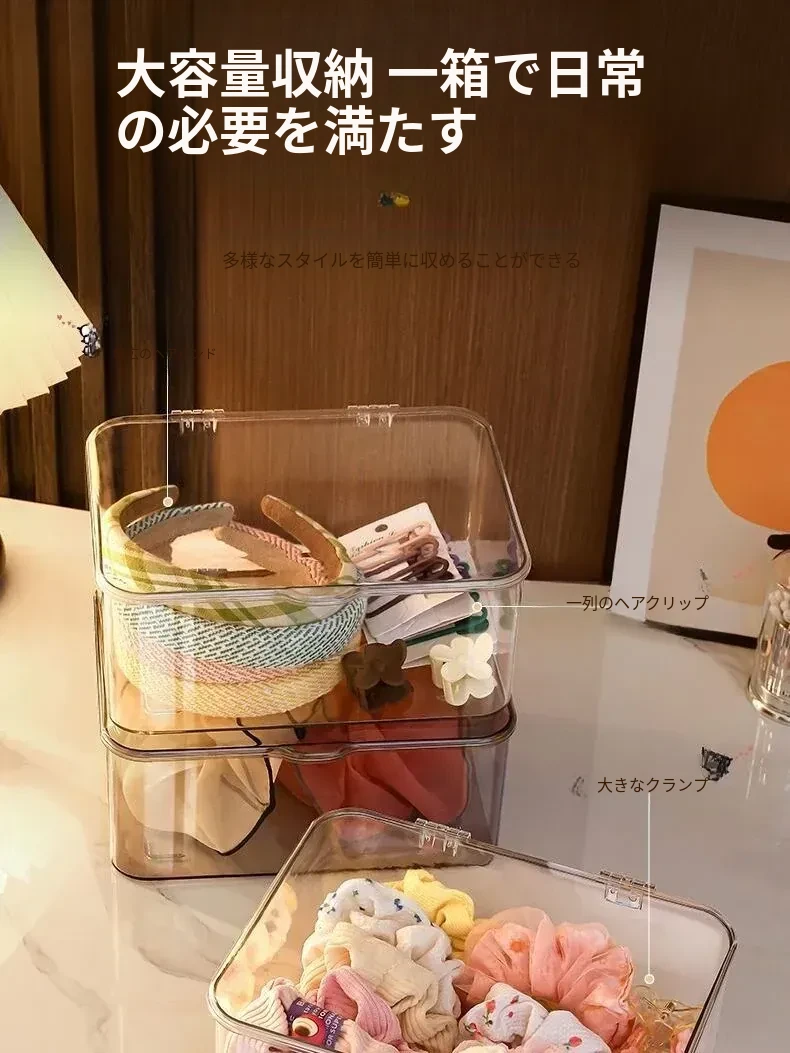 デスクトップ用大容量ヘアアクセサリー収納ボックス|学生・子供向け|髪飾り・ヘアゴムを防塵収納|透明デザインで美しく整理整頓!メイク台に最適!