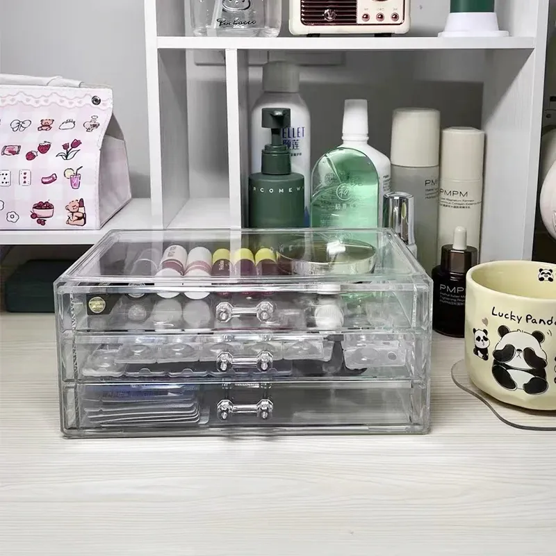 大容量アクリルメイク収納ボックス|引き出し式コスメ&リップ&ジュエリースタンド|ドレッサーに最適なスキンケア&小物整理にぴったり!